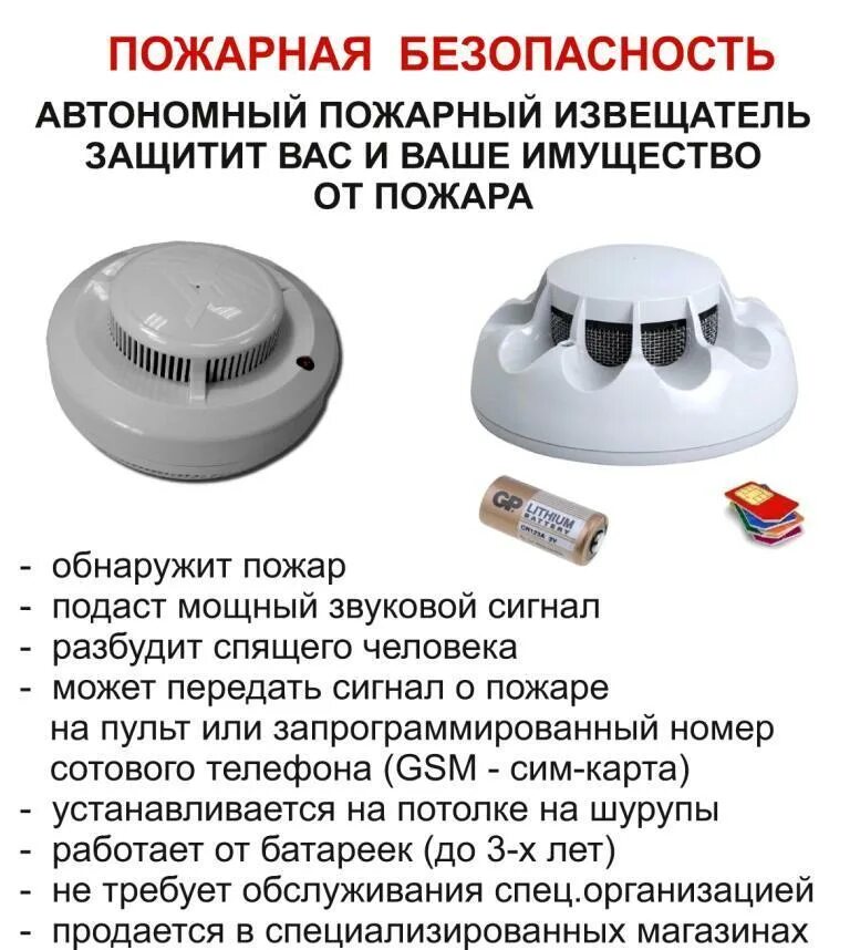 Такие устройства быстро реагируют на тление и задымление, и в результате обнаружения возгорания на ранней стадии, извещатели сообщают об этом хозяевам или напрямую в пожарную часть. Как правило, такое оборудование имеет автономный источник питания, что позволяет им работать вне зависимости от электрической сети. С момента установки таких извещателей источника питания хватает как минимум на 1 год.