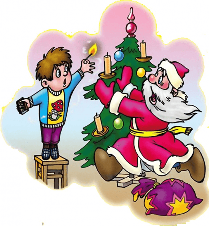 украшать елку целлулоидными игрушками, а также марлей и ватой, не пропитанными огнезащитными составами;